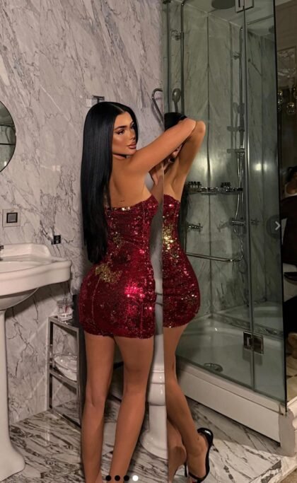 Mini-Robe soirée collerée a double paillettes de Florianne rouge est-elle collorée